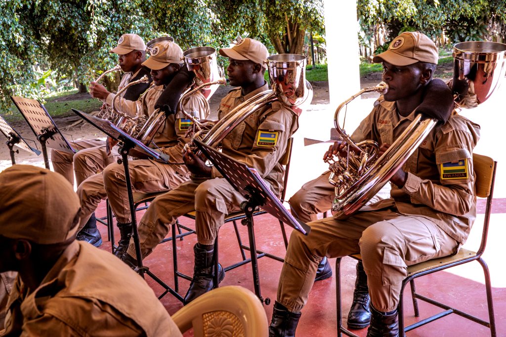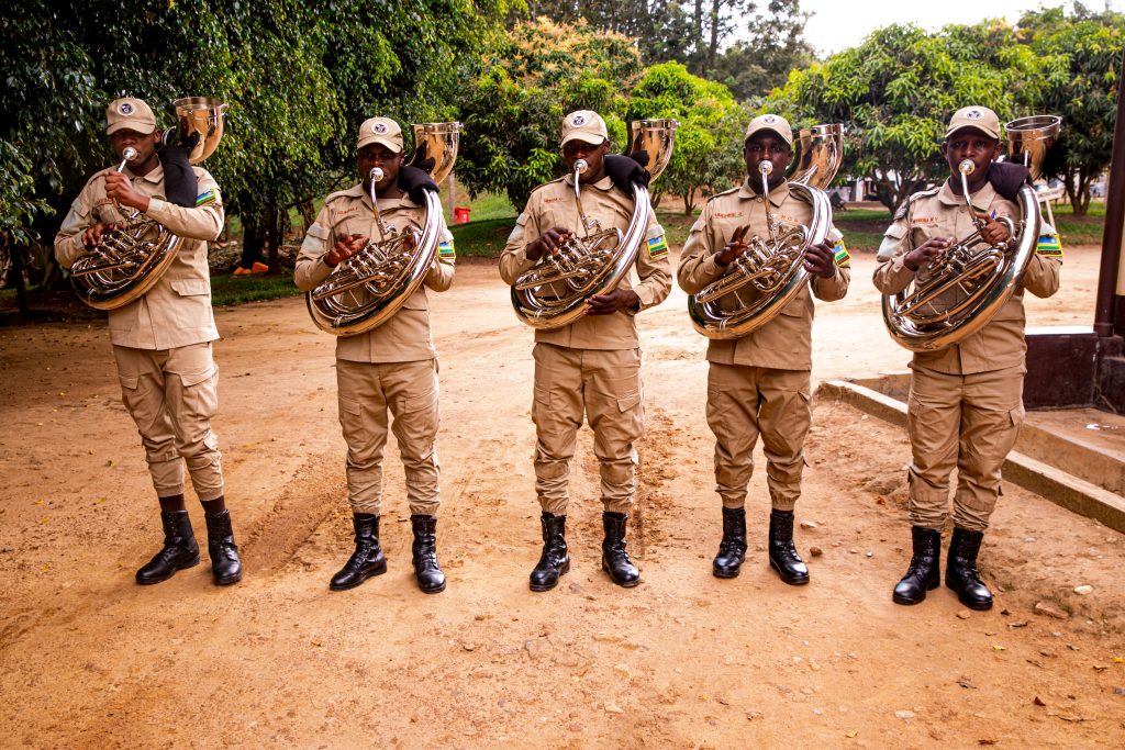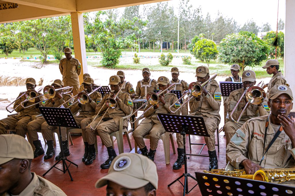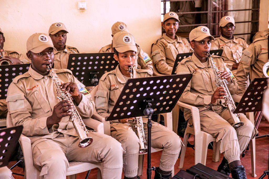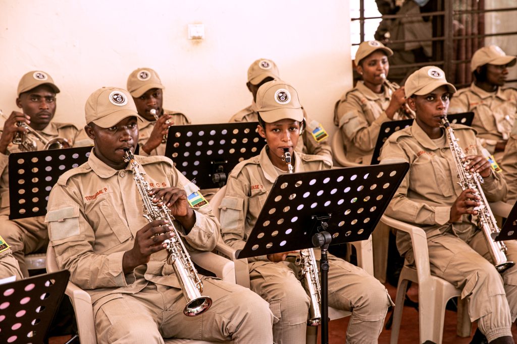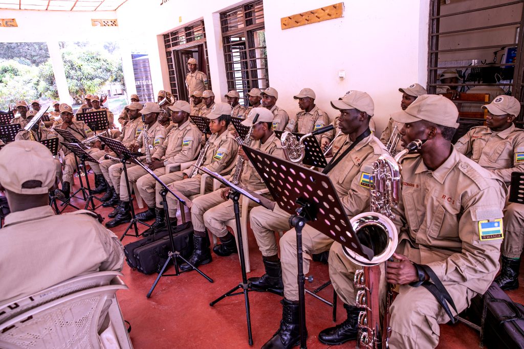 Senior Sergeant Niyirora Matabaro Vincent ucuranga Saxophone na Warder Teta Noella uvuza ingoma akaba anatwara inkoni yo mu karasisi bombi bagize iri tsinda ry’umuziki, bavuga ko bo n’abagenzi babo bitoza gucuranga kuva kuwa Mbere kugeza kuwa Gatanu hanyuma bagatangira gukora isuku yabo n’iyibikoresho bacuranga mu mpera z’icyumweru.
