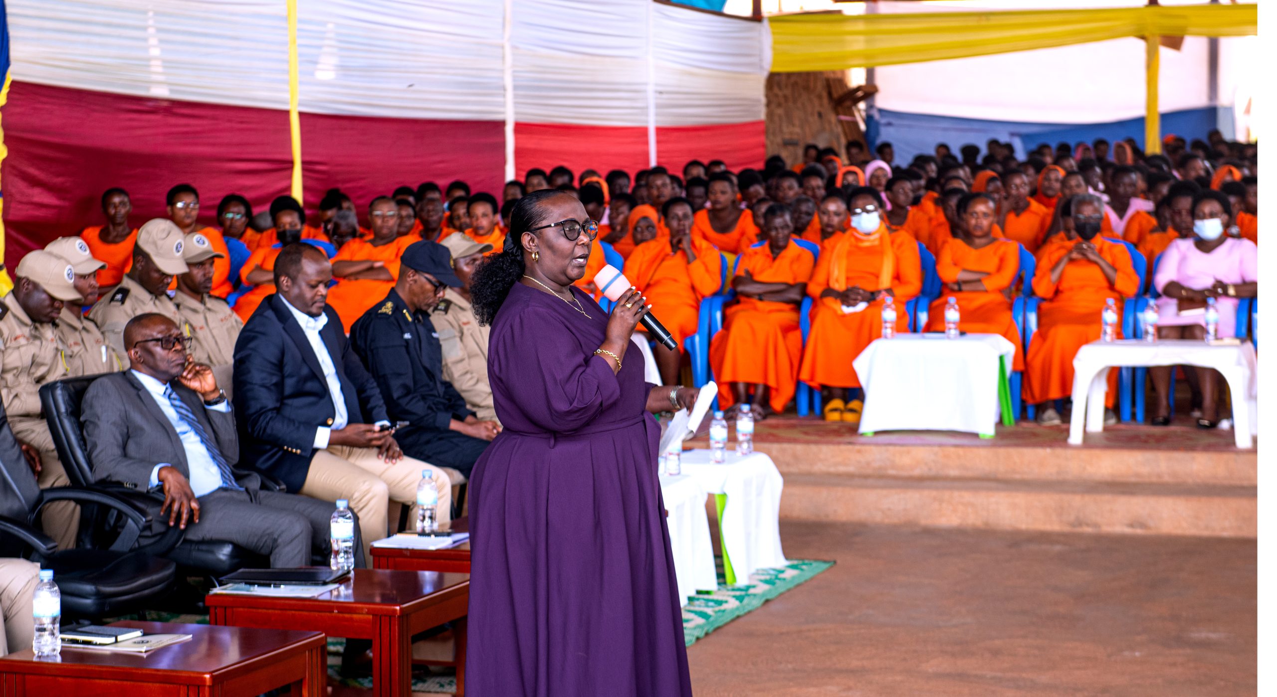 Hon. Domitilla Mukantaganzwa yabanje gushimira Leta y’u Rwanda n’Urwego rw’U Rwanda rushinzwe Igorora, RCS ku ruhare bagira mu kugorora abantu baba baragonganye n’amategeko ntibatereranwe bagakomeza guhabwa agaciro nk’abandi baturage bose.
